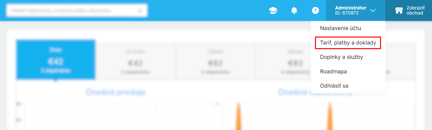 Na podanie žiadosti o pozastavenie prevádzky e-shopu prejdite v administrácii e-shopu do sekcie Tarif, platby a doklady, na záložku Ukončiť e-shop.